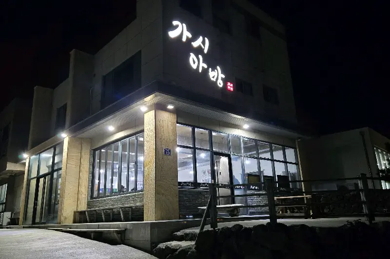 저녁 어스름이 짙게 내린 시간, 멀리서부터 환하게 빛나는 ‘가시아방’ 간판이 눈에 띄었어요. 밤하늘 아래 웅장하게 자리 잡은 모습이, 마치 오랜 기다림에 보답하듯 따뜻하게 맞아주는 느낌이었죠. 넓은 창 너머로 보이는 가게 안은 벌써부터 사람들로 북적거리고, 활기찬 기운이 바깥까지 전해져 오는 듯했습니다. 주차장도 널찍해서 주차 걱정 없이 편하게 들어갈 수 있었어요.