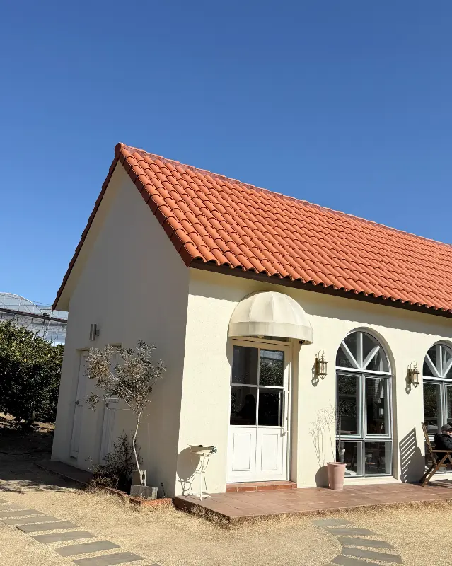 카페 건물은 붉은색 지붕이 덮인 유럽풍 스타일이었다. 흰색 벽면에 아치형 창문이 인상적이었다. 건물 앞에는 작은 테라스도 마련되어 있었다. 따뜻한 햇살 아래, 테라스에 앉아 커피를 마시는 사람들의 모습이 평화로워 보였다.