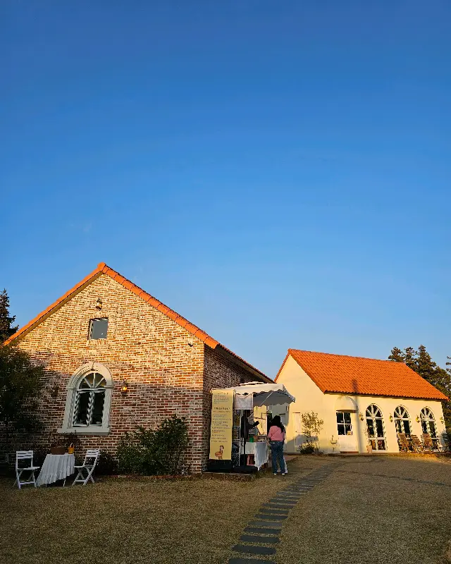 주차하고 딱 내리자마자 감탄사가 절로 나왔어. 건물 자체가 무슨 유럽 작은 마을에 있을 법한 스타일이잖아. 붉은색 지붕에 하얀 벽, 아치형 창문까지. 완전 인스타 감성 제대로야. 햇살까지 따뜻하게 쏟아지니 사진 찍는 족족 인생샷! 📸 괜히 사람들이 사진 맛집이라고 하는 게 아니었어.