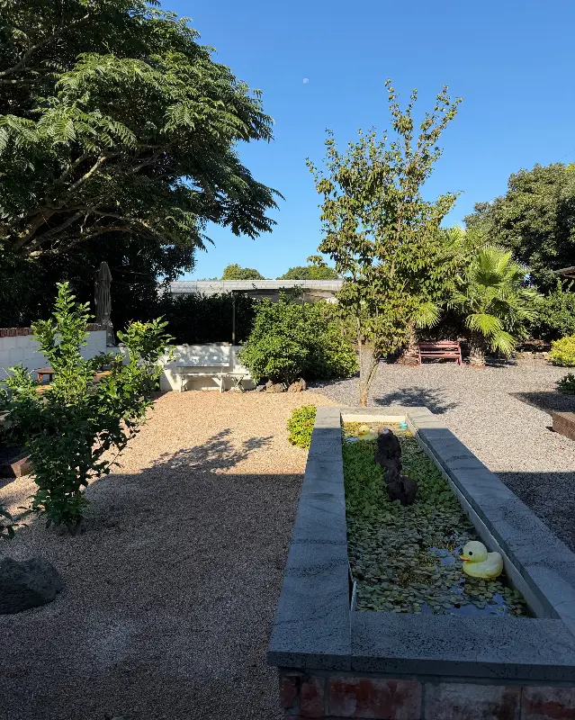 정원을 거닐다 보니, 작은 연못이 눈에 들어왔다. 연못 안에는 귀여운 오리 모형이 떠 있었고, 주변에는 아기자기한 조형물들이 놓여 있었다. 연못 옆 벤치에 앉아 잠시 쉬어가기로 했다. 시원한 바람이 불어와 땀을 식혀주었고, 새들의 지저귐 소리가 귓가에 맴돌았다.