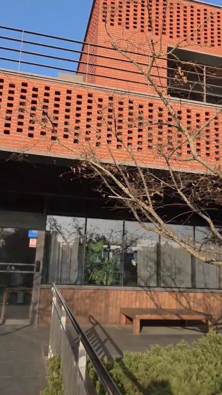 드디어 우동카덴 앞에 도착했다. 붉은 벽돌로 쌓아 올린 건물은 멀리서도 눈에 띄었다. 건물 외벽에 드리워진 그림자는 묘한 분위기를 자아냈고, 입구 옆에 놓인 우동을 형상화한 철제 조형물은 이곳이 단순한 식당이 아닌, 예술과 미식이 공존하는 공간임을 암시하는 듯했다.