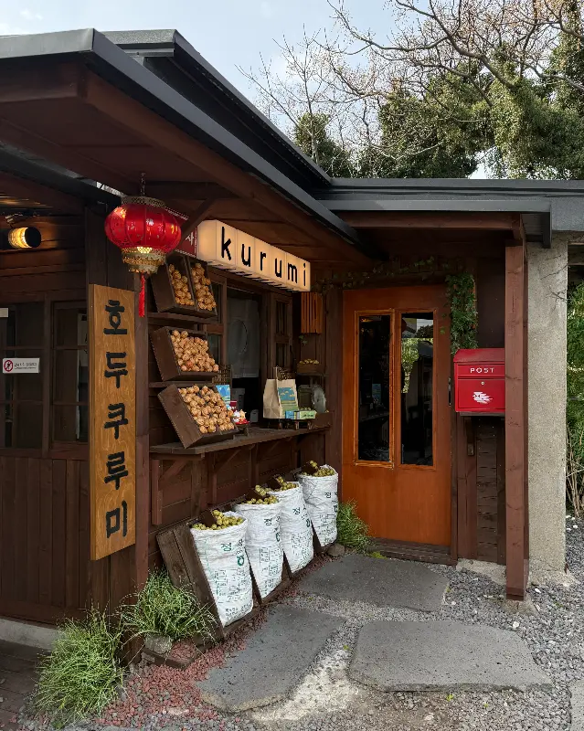 카페 한쪽에는 호두과자를 직접 구워서 파는 작은 가게도 있더라고. 갓 구운 따끈따끈한 호두과자를 맛보니, 이야, 겉은 바삭하고 속은 촉촉한 게 정말 맛있었어. 아이들도 어른들도 모두 좋아할 맛이야.