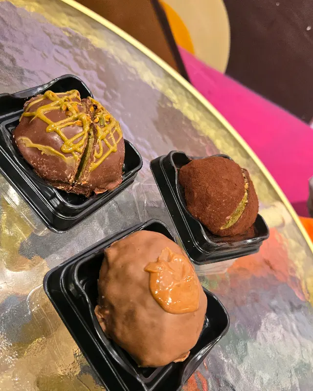 다음으로 맛본 것은 두쫀쿠였습니다. 겉은 바삭하고 속은 쫀득한 식감이, 정말 묘한 매력을 지니고 있었습니다. 특히 우도 땅콩 맛은, 고소하면서도 달콤한 풍미가 일품이었습니다. 곶감 맛 또한 독특했습니다. 쫀득한 쿠키 속에서 느껴지는 곶감의 달콤함은, 색다른 즐거움을 선사했습니다.