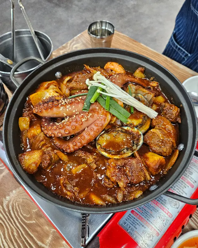 탱글탱글한 해산물과 야들야들한 갈비의 조화! 이 맛은 정말 잊을 수 없어.