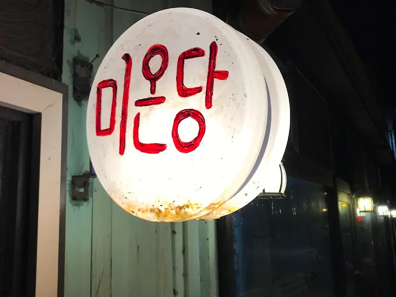 저녁 6시가 조금 넘은 시간이었는데, 다행히 대기 손님은 없었다. 식당 앞에 두 대 정도 주차할 공간이 있었지만, 주변에 알아서 주차해야 할 것 같았다. 뭐, 이 정도는 감수할 수 있다. 혼자 밥 먹을 수만 있다면! 둥근 간판에 붉은 글씨로 쓰인 ‘미온당’이라는 이름이 정겹게 느껴진다. 간판 아랫부분에는 세월의 흔적인 듯 약간의 얼룩이 묻어 있었지만, 오히려 그 모습이 편안하게 다가왔다.