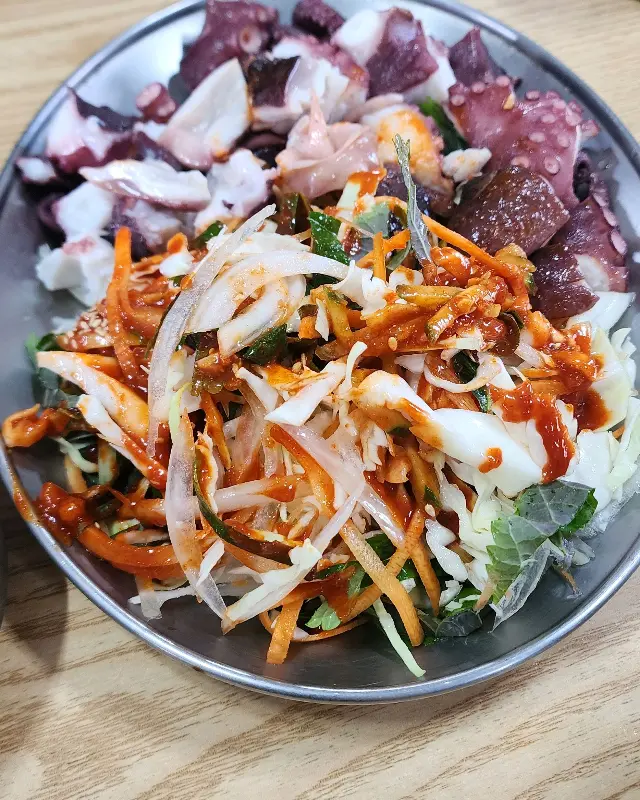 거기에 문어숙회까지 곁들이면, 그야말로 최고의 만찬이 완성되는 것이여. 부드럽고 쫄깃한 문어숙회를 초장에 콕 찍어 먹으면 입안에서 살살 녹는 것이, 정말 꿀맛이라니까. 아이고, 또 먹고 싶어지네!
