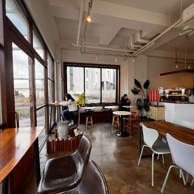 카페 문을 열자마자 버터 향이 확 풍기는 게, 진짜 제대로 찾아왔구나 싶었어. 문 여는 순간부터 이미 게임 끝난거지. 완전 기분 좋아지는 냄새 있잖아. 게다가 아늑하고 깔끔한 인테리어가 내 스타일이었어. 통창으로 햇살이 쫙 들어오는데, 분위기가 진짜 “감성” 그 자체!
