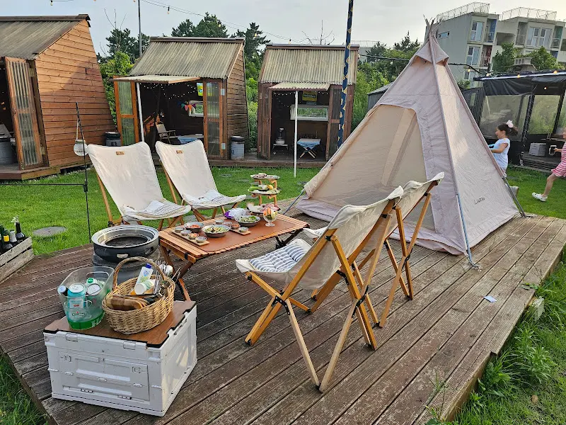 문을 열고 들어서는 순간, 눈앞에 펼쳐지는 풍경에 나도 모르게 “와…” 하는 감탄사가 터져 나왔어. 넓은 잔디밭 위에 텐트랑 방갈로가 옹기종기 모여 있는데, 진짜 캠핑장에 온 것 같은 기분이 들더라고. 은은한 조명이 켜진 저녁 시간대에 방문했더니 분위기가 더 로맨틱했어. 커플끼리 데이트하기도 좋고, 아이들 데리고 가족끼리 와도 너무 좋을 것 같아. 물론 나처럼 친구들이랑 와서 신나게 떠들고 먹는 것도 최고지!