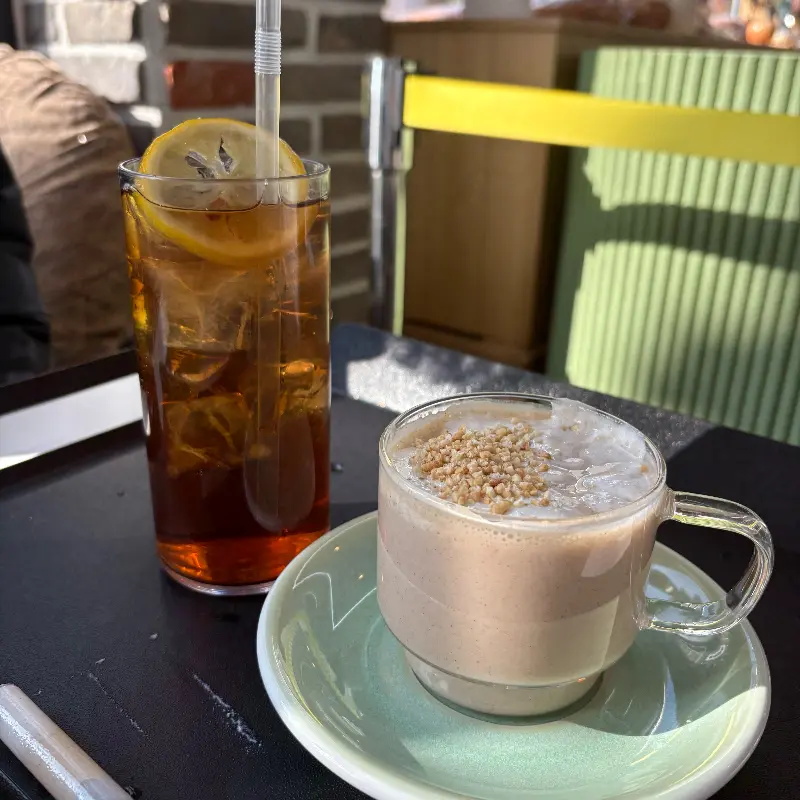 진동벨이 울리고, 드디어 주문한 메뉴가 나왔다. 쟁반 위에 놓인 ‘보리개역라떼’와 ‘우도땅콩 크루아상’은 보기만 해도 군침이 돌았다. 먼저 ‘보리개역라떼’를 한 모금 마셔보았다. 미숫가루 라떼와 비슷한 맛이었지만, 단맛이 강하지 않고 더욱 고소하고 깊은 풍미가 느껴졌다. 마치 제주도의 흙을 그대로 담아낸 듯한 자연스러운 맛이었다.