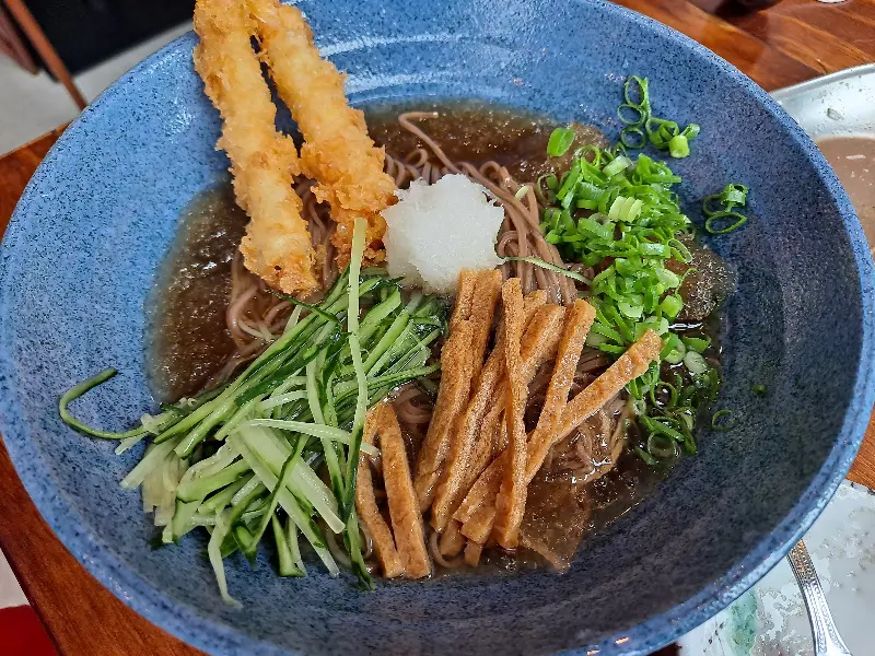 식당은 2층에 위치해 있으며, 저녁까지 영업을 한다. 저녁에는 안주 메뉴도 판매하고 있어, 술 한잔 기울이기에 좋다. 텐동의 튀김 양이 꽤 많고, 갈치튀김 맛도 훌륭하다. 소바마끼 또한 별미이다. 반찬으로 제공되는 계란찜과 양배추도 맛있다. 라멘은 고추를 추가하면 더욱 맛있게 즐길 수 있다.