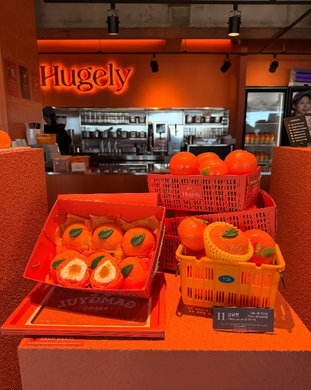 주문대 앞에는 형형색색의 디저트들이 진열되어 있었는데, 하나하나가 예술 작품처럼 아름다웠다. 특히 눈길을 사로잡은 것은 한라봉 모양을 그대로 본뜬 젤라봉이었다. 앙증맞은 크기와 탐스러운 색깔에 홀린 듯, 나도 모르게 셔터를 눌러댔다.