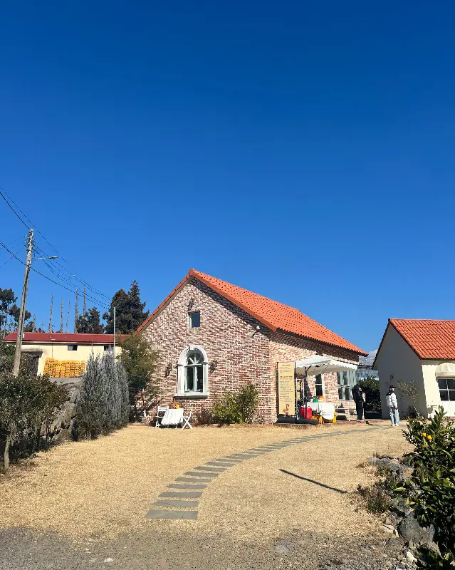붉은 벽돌과 오렌지색 지붕이 앙증맞은 조화를 이루고, 주변을 둘러싼 감귤 나무들이 싱그러움을 더했다.