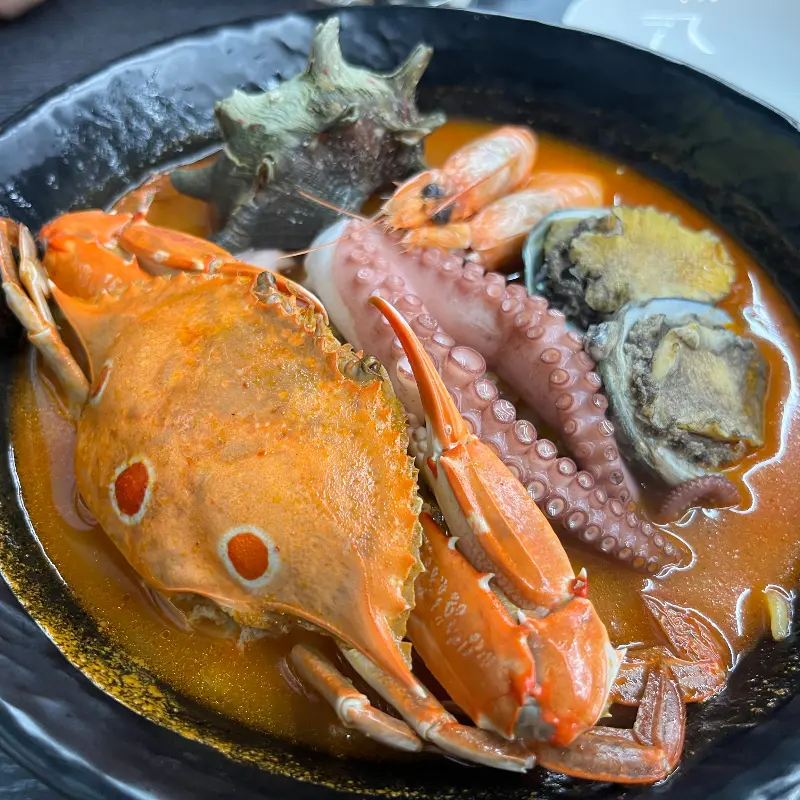 해녀짬뽕은 이름처럼 해산물이 정말 푸짐하게 들어 있었다. 큼지막한 꽃게 한 마리가 통째로 들어가 있었고, 싱싱한 전복과 소라, 새우, 문어 등이 아낌없이 담겨 있었다. 붉은 빛깔의 국물은 보기만 해도 얼큰함이 느껴졌다. 젓가락으로 면을 휘저으니, 탱글탱글한 면발이 모습을 드러냈다. 후각을 자극하는 해산물의 향긋한 내음은, 마치 바다를 통째로 삼킨 듯 신선했다.