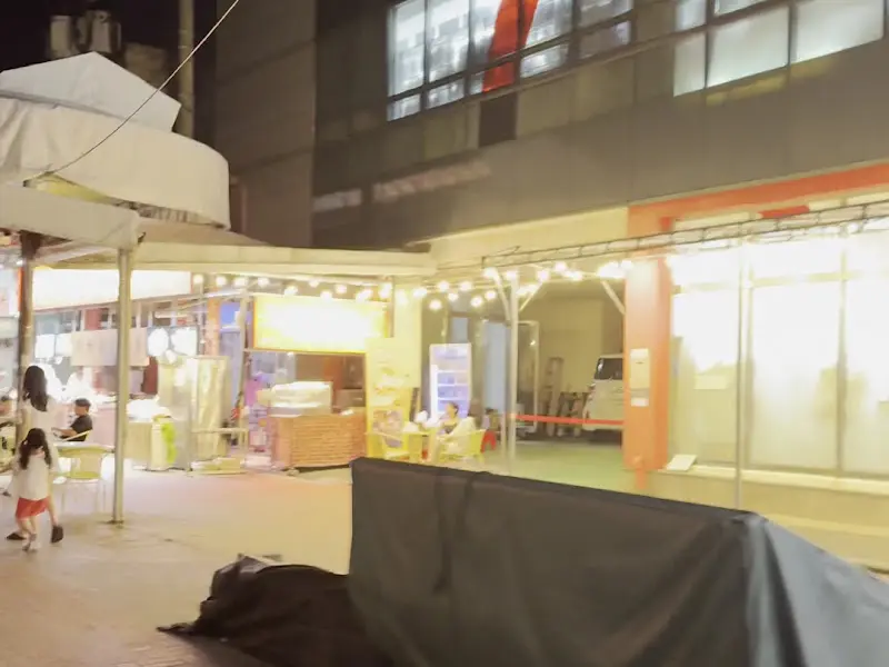 와… 진짜 입구부터 장난 아니었다. 야시장 특유의 북적거림과 맛있는 냄새, 그리고 활활 타오르는 불꽃까지 더해지니 축제 분위기 제대로! 테이블 몇 개 놓여 있어서 포장 말고 바로 먹고 갈 수도 있겠더라. 가게 앞은 이미 사람들로 북적북적, 다들 나처럼 기대감에 가득 찬 표정이었다.