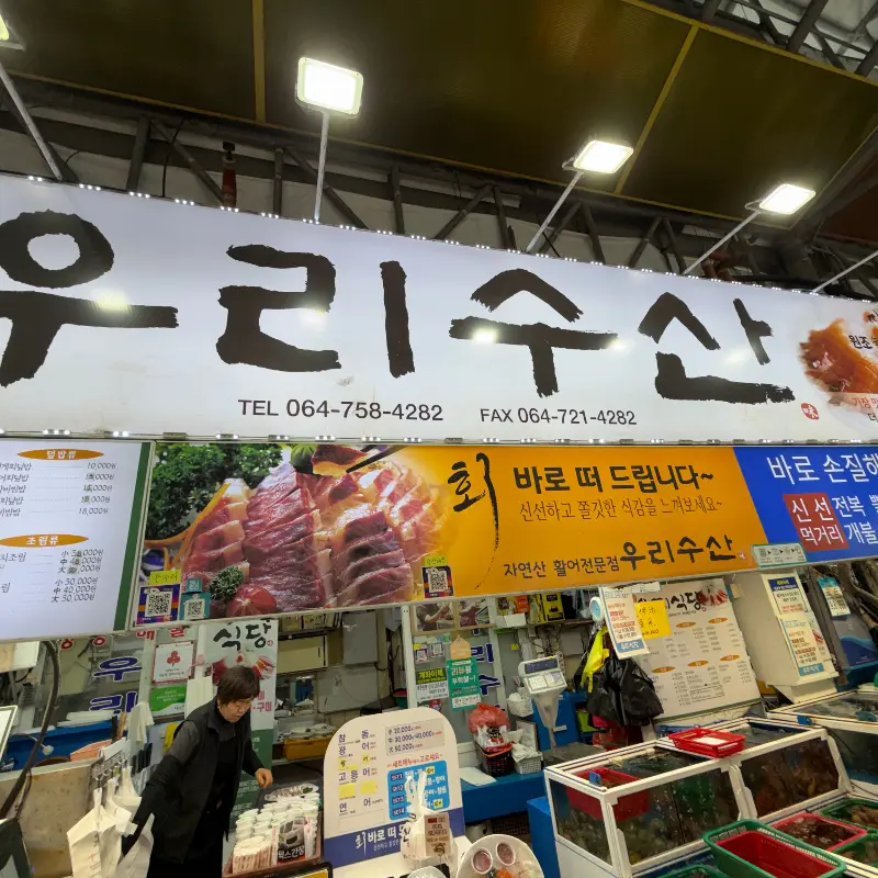 우리수산은 동문시장 8번 게이트 근처 코너에 있어서 찾기도 쉬워. 동문시장에 오면 꼭 한번 들러보라고 강력 추천하고 싶네. 신선한 해산물과 푸짐한 인심에 감동받을 게 분명하다니까.