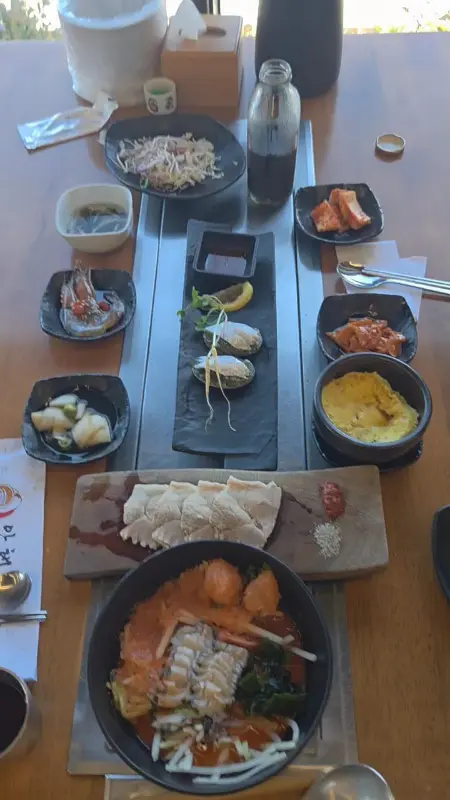 싱싱한 갈치회는 입에 넣자마자 사르르 녹아내렸고, 꼬득꼬득한 전복물회는 새콤달콤한 양념과 어우러져 입맛을 돋우는 데 제격이었죠. 야들야들한 돔베고기는 잡내 하나 없이 깔끔했고, 갓 지은 솥밥은 윤기가 자르르 흘렀습니다. 이 모든 게 기본 반찬이라니, 정말 믿기지 않았어요.