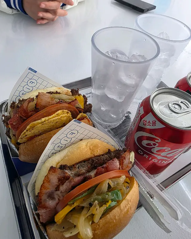 매장 곳곳에는 사진 찍기 좋은 포토존도 마련되어 있습니다. 톡톡 튀는 색감의 벽과 아기자기한 소품들이 시선을 사로잡죠. 특히, 매장 입구에 있는 귀여운 캐릭터 그림은 피즈버거의 마스코트라고 할 수 있습니다. 이 앞에서 사진을 찍으면 누구나 인생샷을 건질 수 있을 겁니다. 에 보이는 것처럼 말이죠.