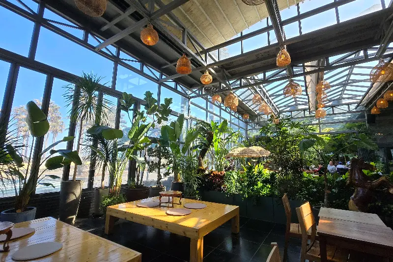 카페 입구부터 느껴지는 초록의 향연. 마치 거대한 식물원에 들어선 듯, 싱그러운 나무와 식물들이 가득했다. 층고가 높아 시원한 개방감까지 더해지니, 답답했던 마음이 뻥 뚫리는 기분이었다. “와…” 나지막한 감탄사가 절로 나왔다. 싱그러운 공기가 폐 속 깊숙이 스며드는 느낌. 도시에서 찌들었던 피로가 싹 씻겨 내려가는 듯했다.