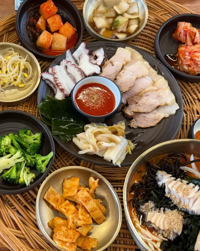 돔베고기는 잡내 없이 깔끔했고, 촉촉한 육질은 입 안에서 부드럽게 녹아내렸다. 곁들여 나온 묵은지와 함께 먹으니, 돼지고기의 느끼함은 사라지고, 깊은 풍미만이 입 안에 가득 맴돌았다. 문어숙회는 쫄깃한 식감이 일품이었다. 적당히 삶아진 문어는 질기지 않고 부드러웠으며, 은은하게 퍼지는 바다 향은 신선함을 더했다. 특히 초장에 살짝 찍어 먹으니, 감칠맛이 극대화되어 입맛을 돋우었다.