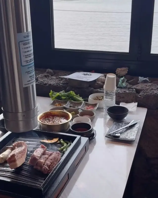 작산 애월흑돼지는 맛뿐만 아니라 분위기 또한 훌륭합니다. 통유리창 너머로 펼쳐지는 애월의 푸른 바다는 그야말로 장관입니다. 저는 창가 자리에 앉아 식사를 했는데, 마치 바다를 바라보며 고기를 먹는 듯한 낭만적인 기분을 느낄 수 있었습니다. 특히 해질녘에 방문하면 붉게 물드는 하늘과 바다를 감상하며 더욱 특별한 식사를 즐길 수 있습니다.