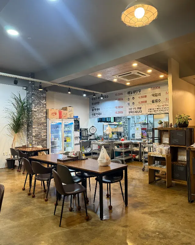 돌담으로 지어진 외관부터가 심상치 않았다. 제주도의 정취가 물씬 느껴지는 모습에 제대로 찾아왔다는 확신이 들었다. 넓은 주차장 덕분에 주차 걱정 없이 편하게 들어갈 수 있었다. 문을 열고 들어서니 깔끔하고 넓은 실내가 눈에 들어왔다. 테이블 간 간격도 넉넉해서 편안하게 식사를 즐길 수 있는 분위기였다. 에서 볼 수 있듯이, 나무 테이블과 의자가 정갈하게 놓여 있고, 은은한 조명이 따뜻함을 더했다. 마치 시골 할머니 댁에 놀러 온 듯한 푸근함이 느껴졌다.