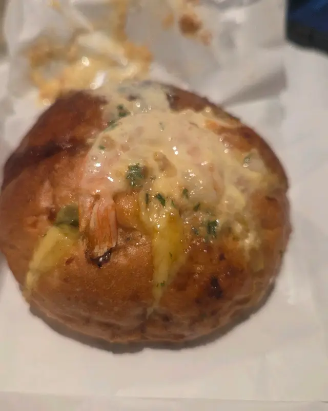 가장 먼저 눈에 띈 것은 새우 바게트였다. 통통한 새우가 듬뿍 들어간 바게트는 겉은 바삭하고 속은 촉촉한 완벽한 식감을 자랑한다. 새우의 풍미와 바게트의 고소함이 어우러져 마치 고급 새우버거를 먹는 듯한 느낌이었다. 가격은 3,800원으로, 꽤나 합리적인 가격에 훌륭한 퀄리티의 빵을 즐길 수 있다는 점이 매력적이다.