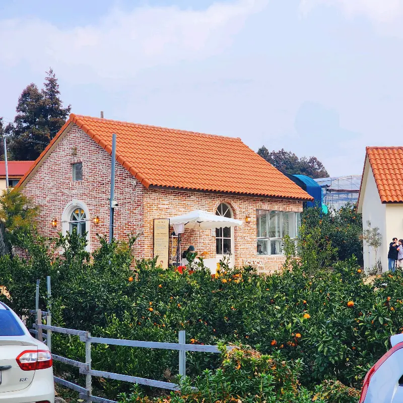 아침 일찍 서둘러 숙소를 나섰어. 네비에 주소를 찍고 꼬불꼬불한 길을 따라 들어가는데, 살짝 좁은 입구가 나오더라구. 엇, 잘못 왔나? 싶었지만, 조금 더 들어가니 넓은 주차장이 짠! 하고 나타났어. 주차하고 내리자마자 눈앞에 펼쳐진 풍경에 입이 떡 벌어졌지 뭐야. 마치 동화 속에 들어온 듯한 예쁜 건물이 귤밭 한가운데 떡하니 자리 잡고 있는 거야. 붉은 벽돌에 아치형 창문, 그리고 주황색 지붕까지. 완전 내 스타일!