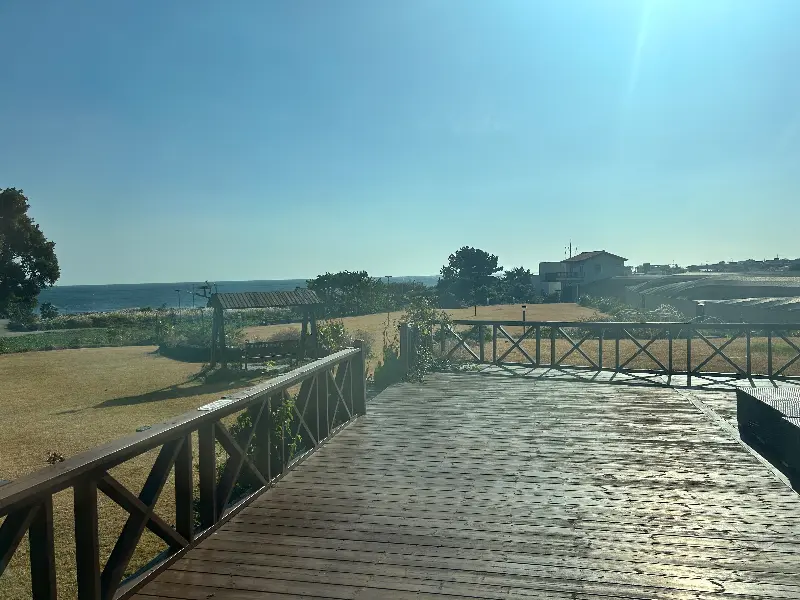 문을 열자마자 보이는 풍경은 정말이지… 액자에 담긴 그림 같다는 말로는 부족해. 푸른 제주 바다가 한눈에 들어오는데, 마음까지 뻥 뚫리는 기분 있잖아. 넓은 잔디밭도 있어서 아이들이 뛰어놀기에도 딱 좋겠더라. 물론 나는 혼자 갔지만…^^;;; 다음에 꼭 가족들이랑 다시 와야겠다고 다짐했지.