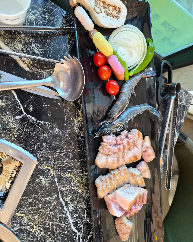 고기를 어느 정도 먹고 나니, 사장님께서 갑자기 새우 하트를 만들어 주셨어요! 🤭 와, 진짜 감동! 어쩜 이렇게 센스가 넘치시는지! 덕분에 분위기 완전 화기애애해지고, 더 맛있게 먹을 수 있었습니다. 새우도 어찌나 신선한지, 톡톡 터지는 식감이 진짜 최고였어요.