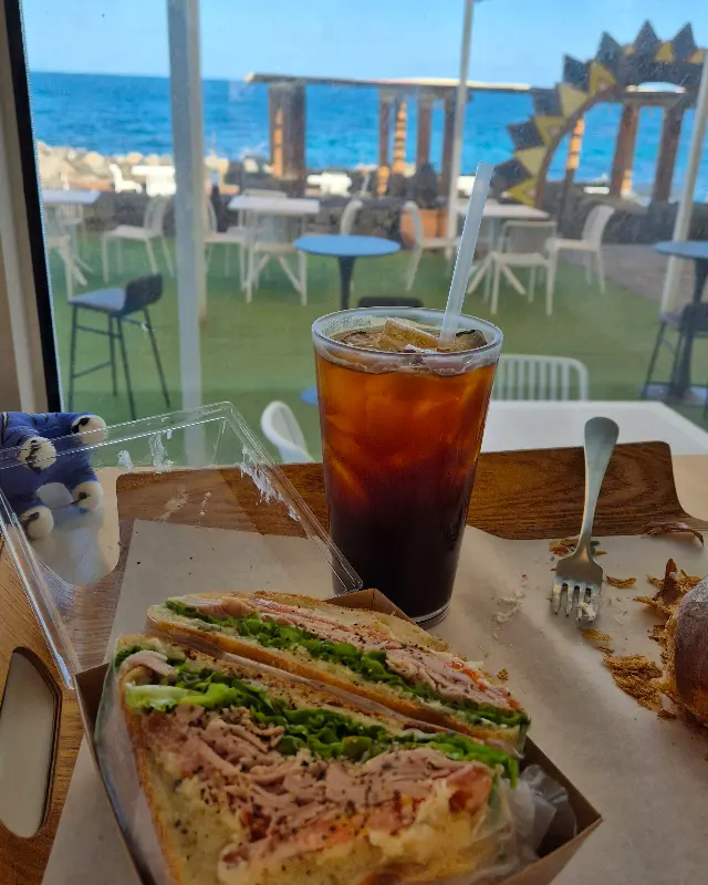 자리를 잡고 앉아 창밖을 바라보니, 그림 같은 풍경이 눈 앞에 펼쳐졌다. 푸른 바다 위로 햇살이 부서지고, 갈매기들이 자유롭게 하늘을 날아다녔다. 마치 한 폭의 그림 같은 풍경이었다. 잠시 넋을 잃고 풍경을 감상하다가, 드디어 두쫀쿠를 맛볼 시간.