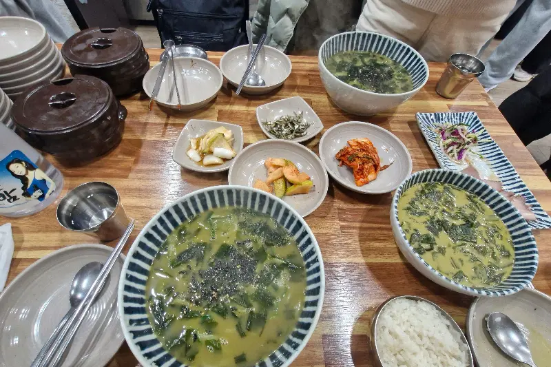 푸짐하게 차려진 보말칼국수와 밑반찬
