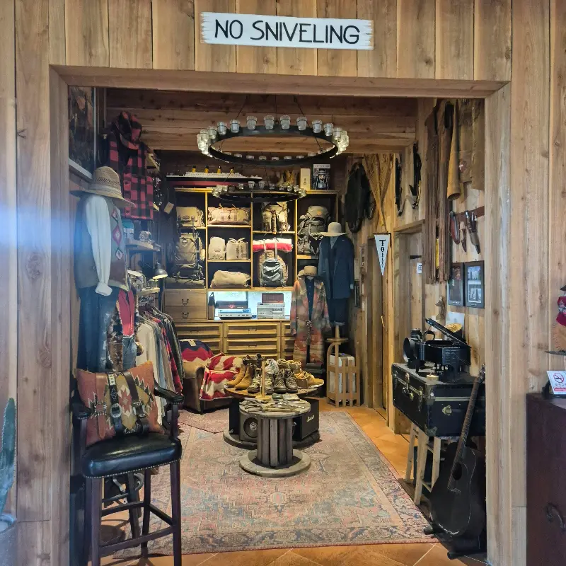 사진에서 보던 것보다 훨씬 인상적인 인테리어는 친봉산장의 매력을 한층 더 끌어올렸다. 나무로 된 벽과 천장, 앤티크한 가구들이 조화롭게 어우러져 독특한 분위기를 연출하고 있었다. 한쪽 벽면에는 다양한 모자들이 진열되어 있었는데, 이는 ‘아웃로’라는 모자 브랜드의 제품을 판매하는 공간이라고 한다. 모자를 직접 써보고 사진을 찍을 수 있도록 마련된 공간은 또 다른 재미를 선사했다. 마치 오래된 영화 세트장에 들어온 듯한 느낌이었다.