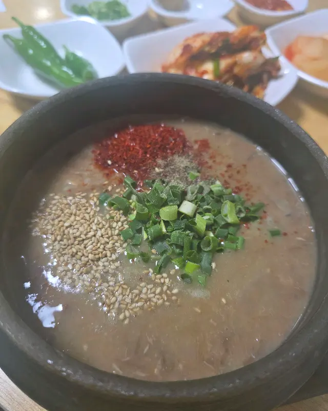사골해장국은 얼큰한 맛이 일품이다. 뽀얀 사골 육수에 매콤한 양념을 더해, 칼칼하면서도 시원한 국물 맛을 자랑한다. 해장으로도 좋고, 든든한 식사로도 손색없다.