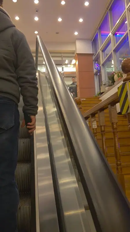 주차장에 들어서자마자 규모에 압도당했다. 엄청나게 넓은 주차장이 꽉 차 있었는데, 그만큼 인기가 많다는 뜻이겠지? 주차를 하고 내리니 어디선가 풍겨오는 맛있는 흑돼지 냄새에 더욱 기대감이 커졌다. 매장 입구에는 에스컬레이터까지 있더라. 고깃집에 에스컬레이터라니, 스케일이 남달랐다.