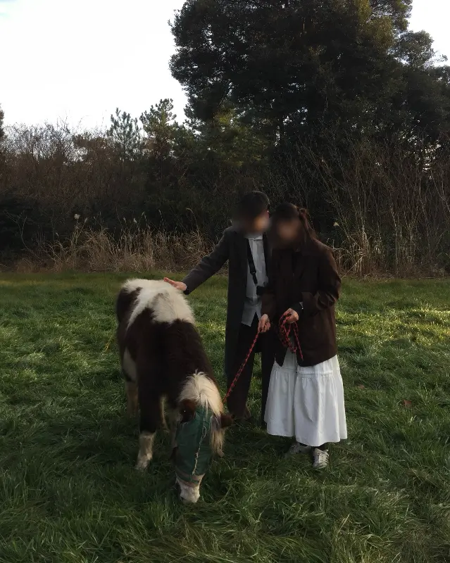 드디어 기다리고 기다리던 홀스테라피 시간. 나는 ‘하양이’라는 이름을 가진, 순하고 귀여운 포니와 함께 산책을 하게 되었다. 처음에는 조금 긴장했지만, 하양이가 순한 눈빛으로 나를 바라보는 순간, 긴장감은 눈 녹듯이 사라졌다. 하양이의 갈기를 부드럽게 쓰다듬으며 인사를 나누고, 천천히 발걸음을 옮겼다.