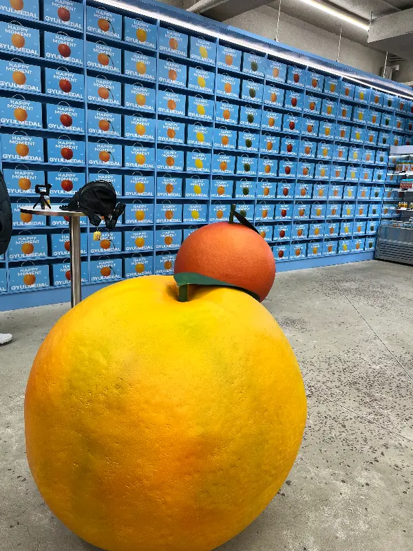 매장 문을 열자, 예상치 못한 광경이 눈앞에 펼쳐졌습니다. 마치 예술 작품처럼 정렬된 귤 상자들이 벽면을 가득 채우고 있었는데, 각각의 상자에는 귤의 종류와 특징을 나타내는 라벨이 붙어 있었습니다. 이곳은 단순한 카페가 아닌, 귤이라는 소재를 통해 다채로운 경험을 선사하는 ‘귤 컨셉 스토어’였던 것입니다.