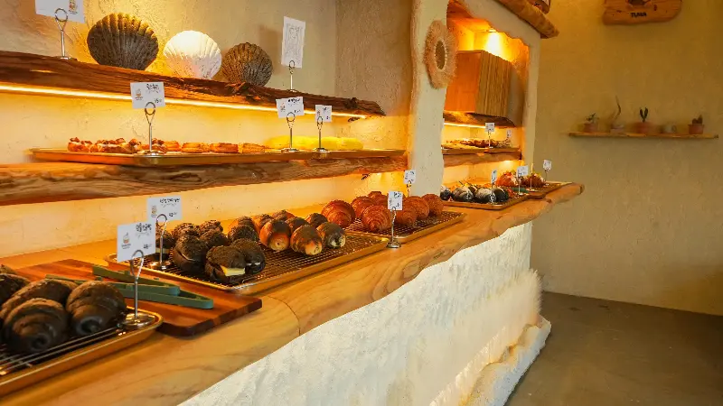 진동벨이 울리고, 주문한 메뉴가 나왔다. 쟁반 위에 놓인 음료와 빵은 사진으로 보던 것보다 훨씬 더 먹음직스러웠다. 시그니처 음료는 푸른 바다를 닮은 청량한 색깔이 인상적이었다. 빵은 겉은 바삭하고 속은 촉촉해 보였다. 사진을 몇 장 찍고, 드디어 음료를 한 모금 마셔봤다. 달콤하면서도 상큼한 맛이 입안 가득 퍼졌다. 인위적인 단맛이 아니라, 자연스러운 단맛이라 질리지 않고 계속 마시게 됐다.