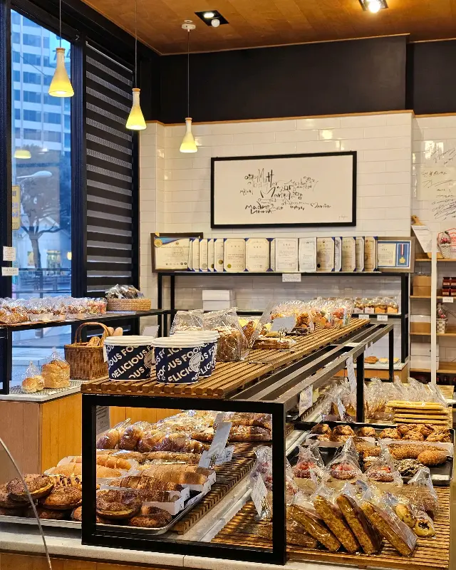 문을 열자마자 훅 풍겨오는 따뜻한 빵 냄새… 이거 완전 반칙 아닌가요? 갓 구워져 나온 빵들이 쇼케이스를 가득 채우고 있는데, 비주얼부터가 이미 게임 끝. 종류도 어찌나 다양한지, 눈이 휘둥그레져서 뭘 골라야 할지 한참을 고민했다. 다 맛있어 보여서 진짜 선택 장애 제대로 왔다.