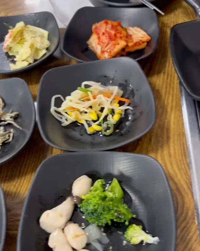 주문을 마치자, 정갈한 밑반찬들이 하나둘씩 테이블에 놓이기 시작했어. 김치, 콩나물, 브로콜리, 톳 무침 등 종류도 다양하더라. 쟁반 가득 차려진 반찬들을 보니, 마치 엄마가 차려준 집밥 같은 푸근함이 느껴졌어. 특히 톳 무침은 바다 향이 은은하게 풍기는 게, 정말 신선하더라. 밑반찬 하나하나에 정성이 느껴지는 게, 메인 요리에 대한 기대감을 한껏 높여줬지.