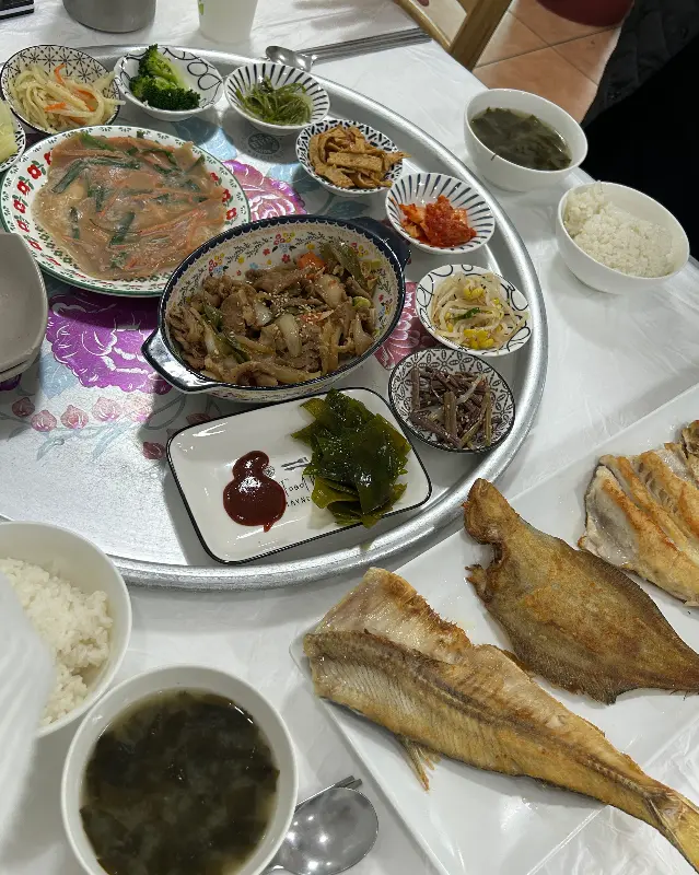 밑반찬들도 하나하나 정성이 가득했다. 톳 무침, 멸치볶음, 김치 등 다양한 종류의 반찬들은 모두 신선한 재료로 만들어져, 집밥을 먹는 듯한 따뜻한 느낌을 주었다. 특히, 슴슴하면서도 깊은 맛이 나는 미역국은 생선구이와 환상적인 조화를 이루었다.