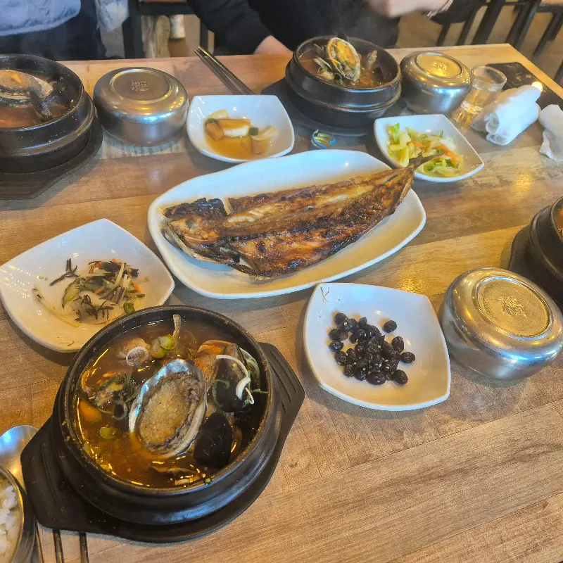 먼저 전복해물뚝배기 국물을 한 입 맛보았다. 깊고 진한 해물의 향이 입안 가득 퍼져 나갔다. 시원하면서도 칼칼한 국물은 뱃속까지 따뜻하게 데워주는 듯했다. 마치 오랜 시간 끓여낸 깊은 맛은 40년 전통의 내공을 느끼게 했다. 뚝배기 안에는 전복, 딱새우, 홍합, 바지락, 거북손 등 다양한 해산물이 아낌없이 들어 있었다. 특히, 쫄깃한 전복과 탱글탱글한 새우는 신선함이 그대로 느껴졌다.