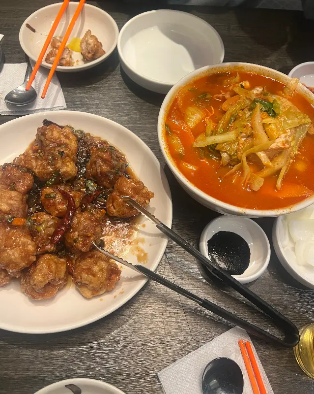 꽃게짬뽕, 탕수육, 야끼만두의 조화로운 향연
