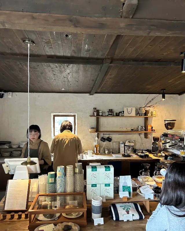 문을 열고 들어서자, 따뜻하고 아늑한 분위기가 온몸을 감쌌어. 나무로 된 천장과 은은한 조명, 그리고 곳곳에 놓인 아기자기한 소품들이 편안한 느낌을 주었어. 마치 오래된 친구 집에 놀러 온 것처럼 마음이 편안해지더라. 잔잔한 음악 소리가 공간을 부드럽게 채우고 있었고, 커피 그라인더 돌아가는 소리와 얼음 부딪히는 소리가 묘하게 조화롭게 들렸어.