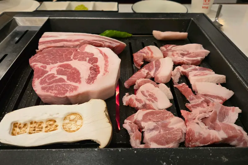 메뉴판을 꼼꼼히 살펴보니 흑돼지 오겹살, 목살, 꼬들살 등 다양한 부위가 준비되어 있었다. 혼자 왔으니 2인 세트를 시키기엔 양이 많을 것 같아 고민하고 있었는데, 직원분께서 1인분 주문도 가능하다고 친절하게 안내해주셨다. 덕분에 흑돼지 목살 1인분과 김치찌개를 주문하고, 설레는 마음으로 기다렸다.