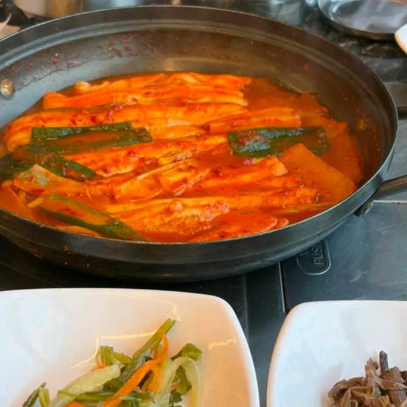 특히 좋았던 점은, 갈치조림에 들어간 갈치가 모두 순살이었다는 것입니다. 가시를 발라낼 필요 없이, 젓가락으로 살만 쏙쏙 골라 먹을 수 있어서 정말 편했습니다. 덕분에, 함께 간 남자친구와 오롯이 음식 맛에만 집중할 수 있었죠.