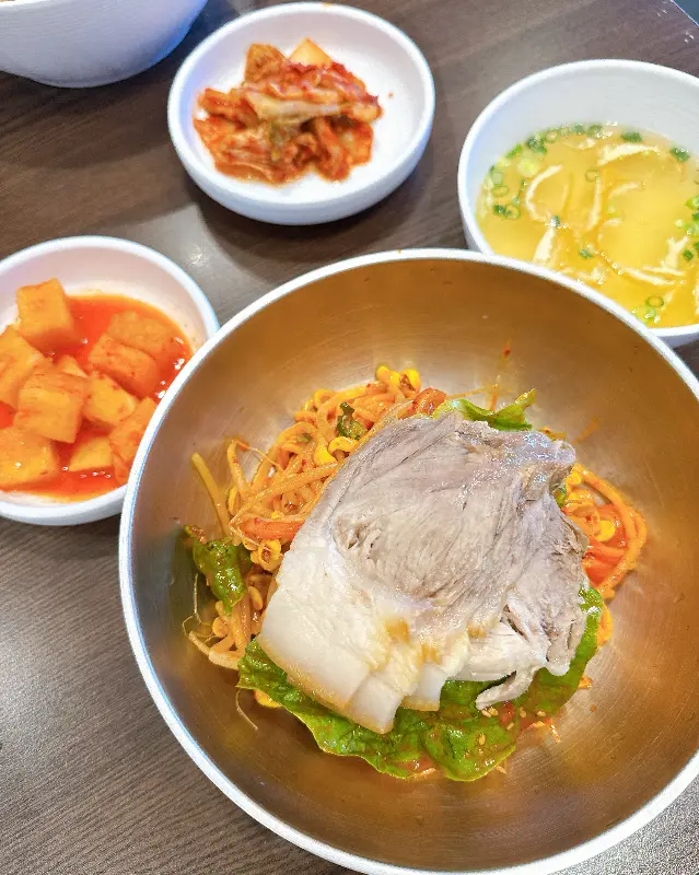 이어서 맛본 비빔국수는, 고기국수와는 또 다른 매력을 지니고 있었다. 쫄면처럼 탱글탱글한 면발에, 매콤달콤한 양념이 어우러져 입맛을 돋우었다. 콩나물과 상추 등 신선한 채소가 듬뿍 들어있어 아삭아삭한 식감을 더했고, 고소한 참기름 향이 식욕을 자극했다.