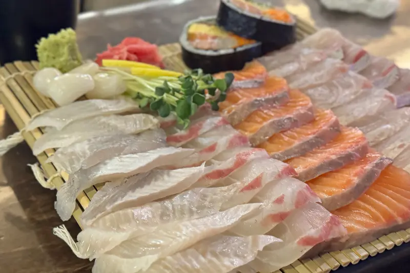훈남횟집에서는 다양한 곁들임 메뉴도 즐길 수 있었다. 기본으로 나오는 에비깡은 짭짤하면서도 고소한 맛이 일품이었고, 신선한 해산물로 만든 샐러드는 상큼한 드레싱과 어우러져 입맛을 돋우었다. 특히 초밥용 밥을 제공해 주는 점이 인상적이었다. 김에 밥을 올리고, 좋아하는 회를 얹어 초밥처럼 만들어 먹으니, 또 다른 즐거움을 느낄 수 있었다.