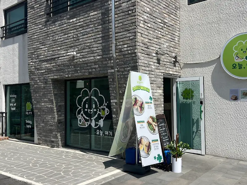귀여운 클로버 간판이 인상적인 ‘오늘, 여기’ 외부 모습.