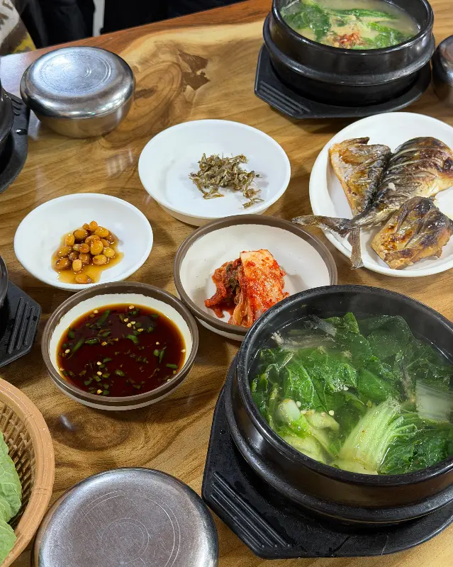 각재기국은 전갱이 살을 발라 배추와 함께 먹는 음식이다. 젓가락으로 조심스럽게 살을 발라내어 배추에 얹어 먹으니, 담백하면서도 고소한 맛이 입안 가득 퍼졌다. 생선 특유의 비린 맛은 전혀 느껴지지 않았다. 오히려 신선하고 깔끔한 맛이 인상적이었다. 특히 된장 베이스의 국물과 어우러지는 맛이 환상적이었다. 밥 한 공기를 말아 뚝배기째 들고 마시니, 세상 부러울 것이 없었다.
