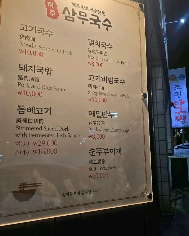 참, 삼무국수는 늦은 시간까지 영업을 해서 더욱 좋았다. 저녁 11시까지 영업한다고 하니, 늦은 비행기로 도착하는 여행객들에게는 정말 반가운 소식이 아닐 수 없다. 나 역시 늦은 저녁에 도착해서 배가 너무 고팠는데, 삼무국수 덕분에 든든하게 배를 채울 수 있었다.